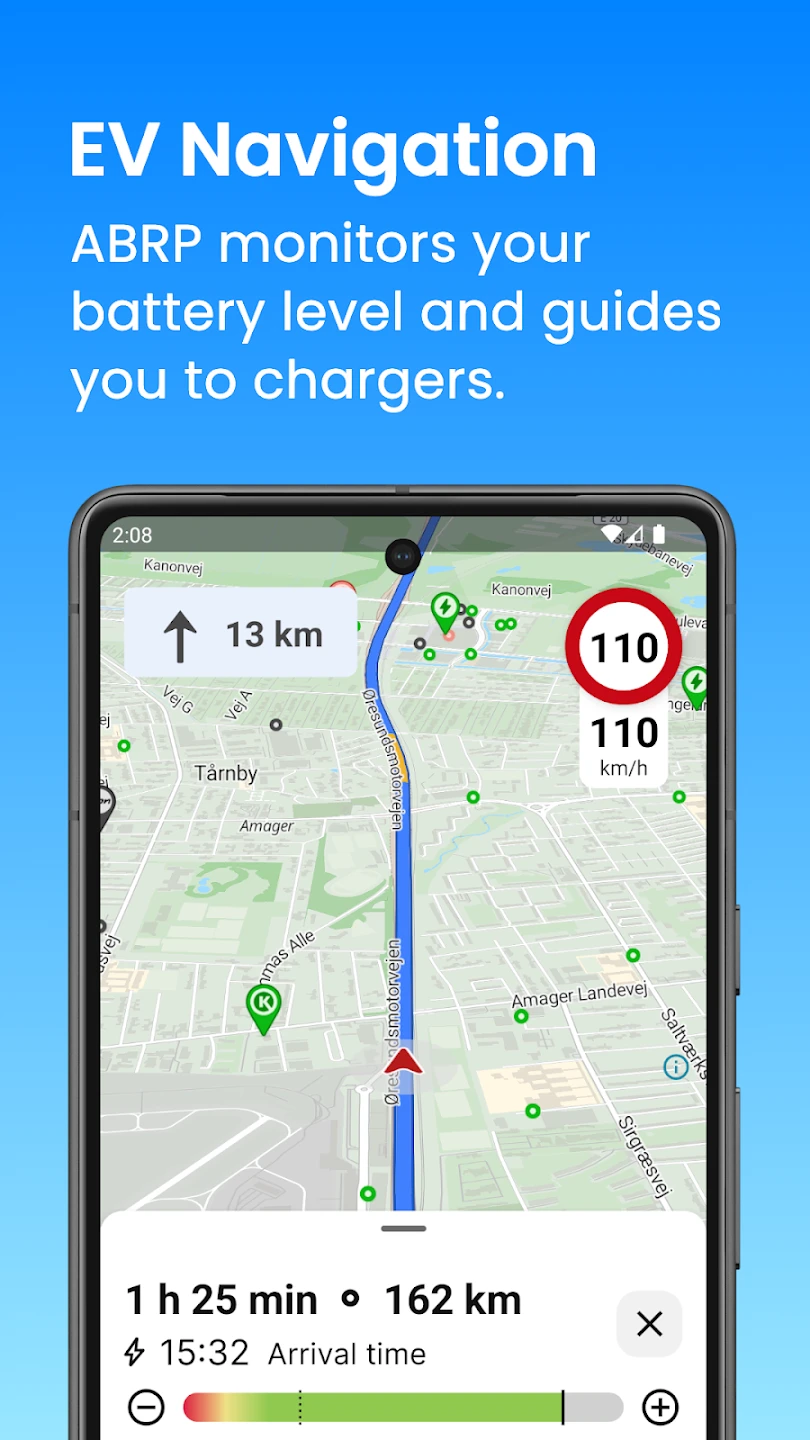 - Advanced EV Route Calculation: This core feature calculates routes specifically tailored for electric vehicles, analyzing battery capacity, energy consumption, and the nearest compatible charging stations to ensure the trip is viable and optimizes range usage, preventing unexpected battery depletion during travel. It considers elevation changes and local traffic data to provide realistic estimates of battery drain.