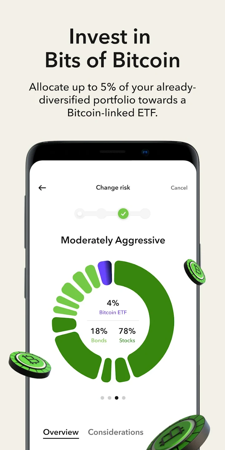 Emphasizes guided investment education and step-by-step goal planning. Includes interactive learning modules and personalized recommendations based on user risk tolerance surveys. |