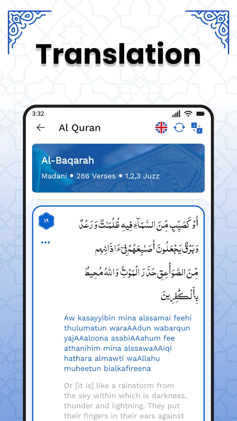 • Multiple Translations & Tafsirs: Choose from over 30 translations (including renowned versions like Yusuf Ali and Sahih International) and detailed tafsirs like Ibn Kathir’s exegesis, with support for 10 different languages. This enables users to understand complex verses in context, addressing translation variability across different interpretations.