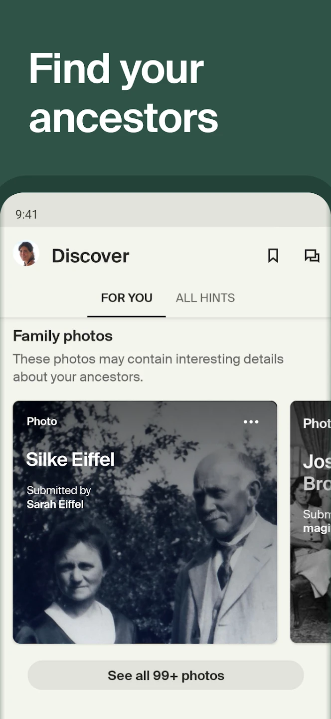 - Smart Matching for DNA & Family Trees: The app automatically matches individuals on your tree to their closest living relatives among other users and suggests DNA matches based on shared DNA segments. This feature simplifies the challenging process of identifying biological relatives by providing hints and connections that might otherwise be missed, saving users hours of manual searching.