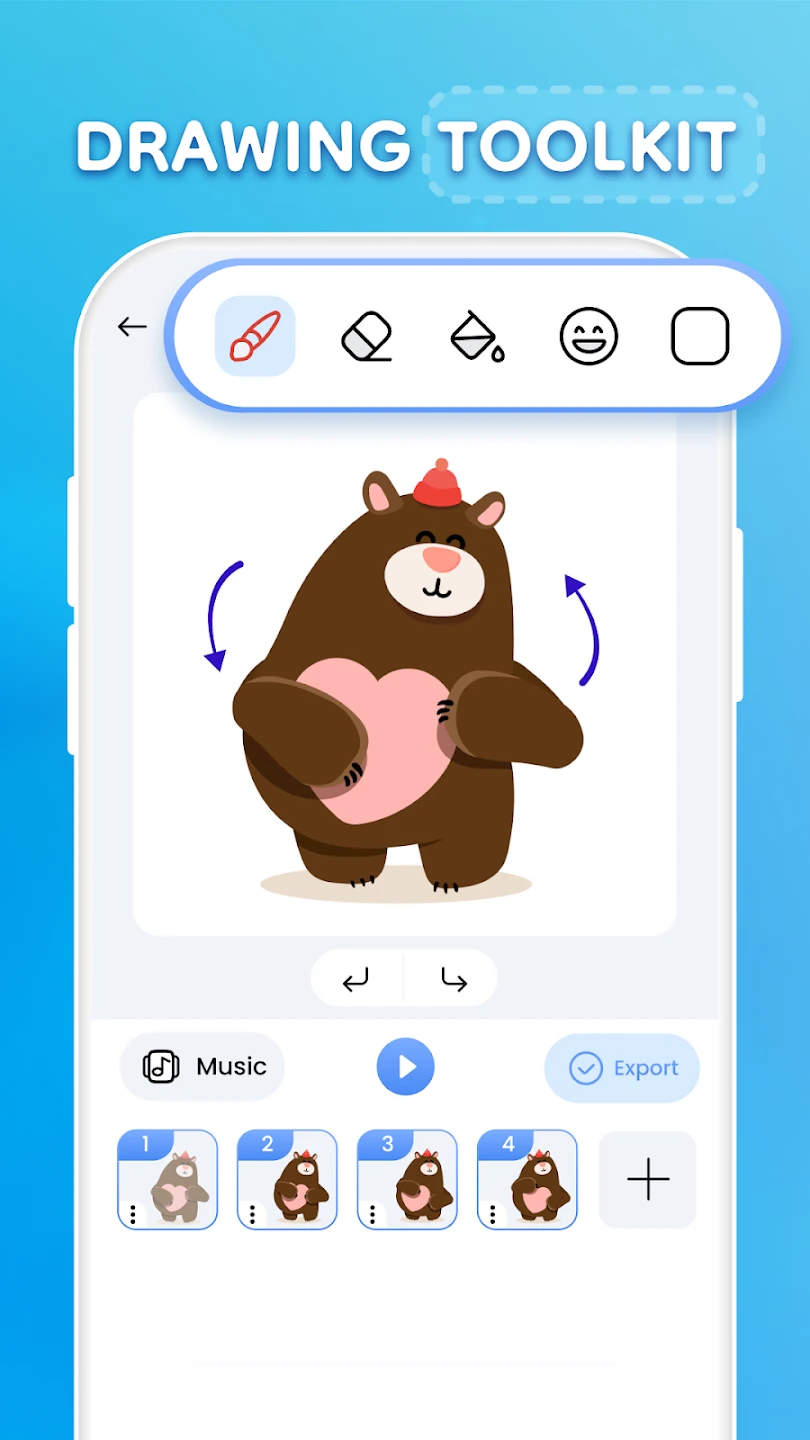 A: Absolutely. AniDraw: 2D Draw Animation allows full editing of your drawn content directly within the app. Use the various pen, brush, eraser, and shape tools to modify, refine, or adjust your artwork at any point during your project.