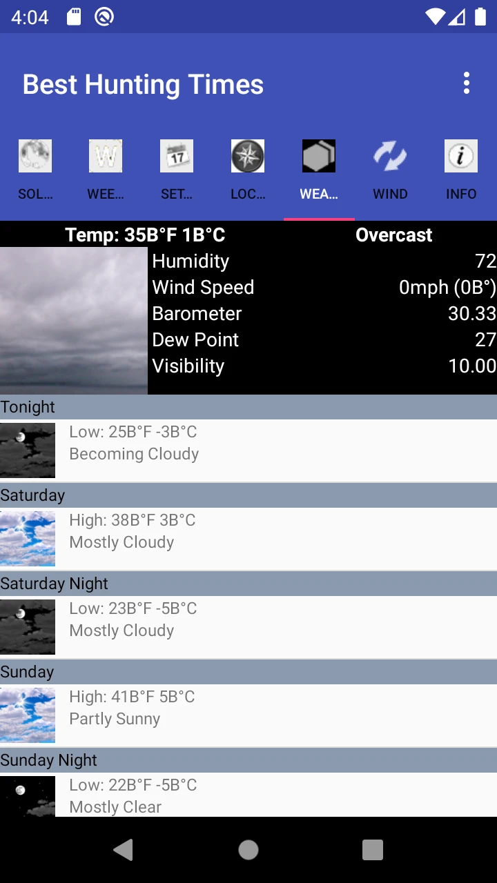 • Weather Intelligence: Integrates with meteorological services to analyze temperature gradients, wind direction/density, and precipitation forecasts. Users can optimize their approach based on how these factors realistically impact visibility, scent transmission, and animal comfort levels in the environment.