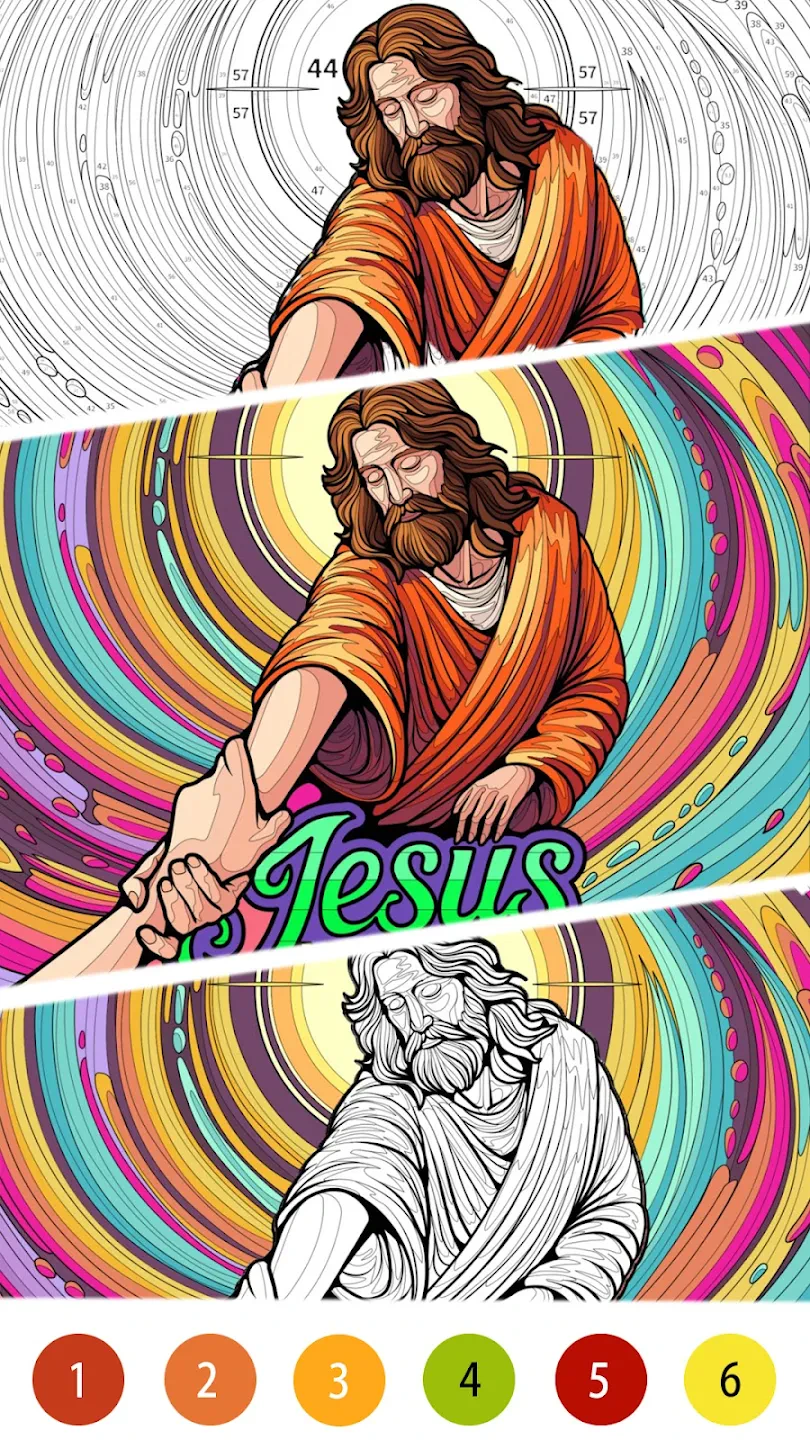 • Core Gameplay Loop: Players select a numbered section and choose from a palette of colors. They fill the sections gradually to reveal biblical scenes, with each completed image unlocking new content. This simple yet engaging mechanic provides a satisfying creative outlet.