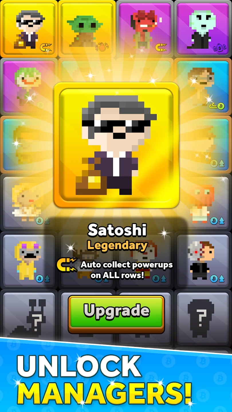 - [Customization or Power-ups]: Players collect Bitcoin and gems to purchase items from an in-game shop, upgrade core mechanics like mining speed, health, or special abilities. Character upgrades or unlocking new skins are likely motivators for ongoing play, alongside earning real-world crypto.