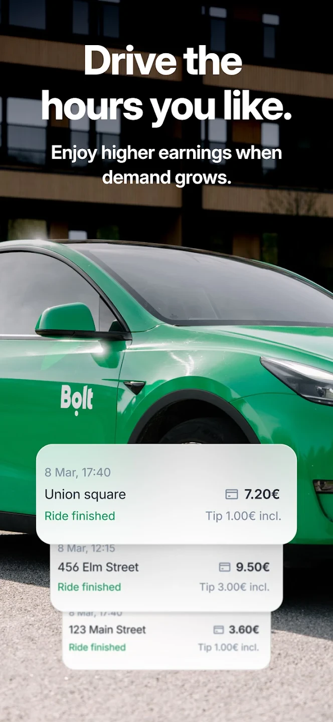Bolt Driver: Drive & Earn is the official application for ride-hailing service Bolt, allowing qualified individuals to sign up as drivers and connect with requesting passengers. It provides tools for managing trips, tracking earnings, and accessing support directly from their smartphone. This service is primarily designed for individuals seeking flexible income opportunities through driving.