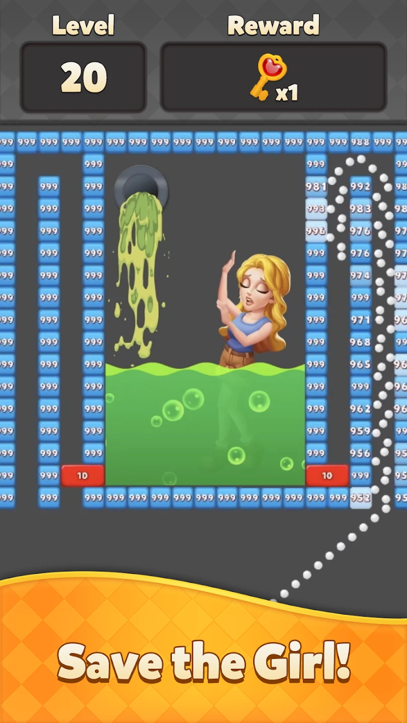 • Master the angle control: Learn to hit the ball at just the right angle to create chain reactions that break multiple rows simultaneously, earning combo points and extra lives.