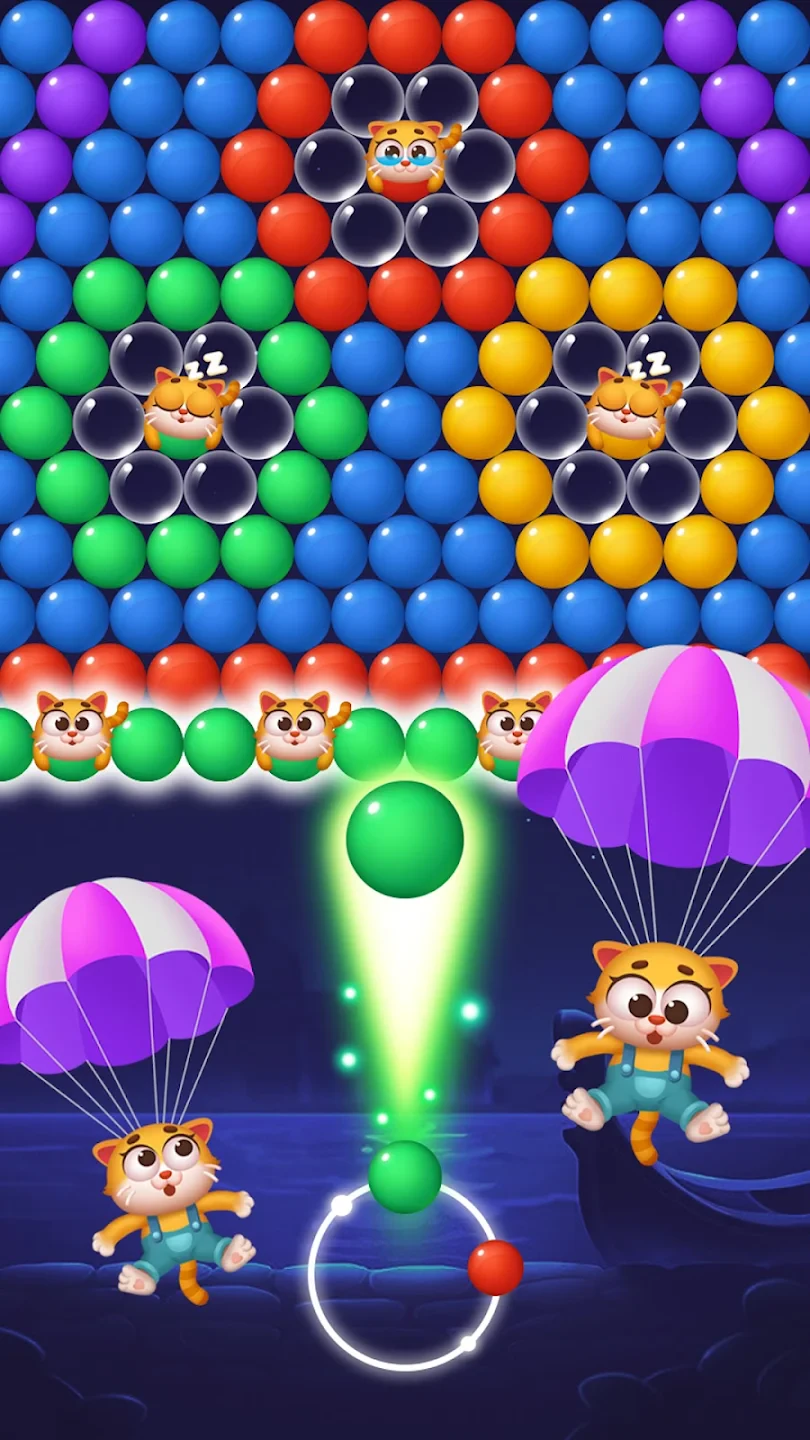 • [Customization or Power-ups]: Players often earn points or bonuses to purchase items from in-game shops, unlocking new character skins, background themes, or power-up packs. Power-ups like bubble boosters or obstacles eliminators provide strategic advantages, motivating ongoing play by adding variety and helping overcome difficult levels.
