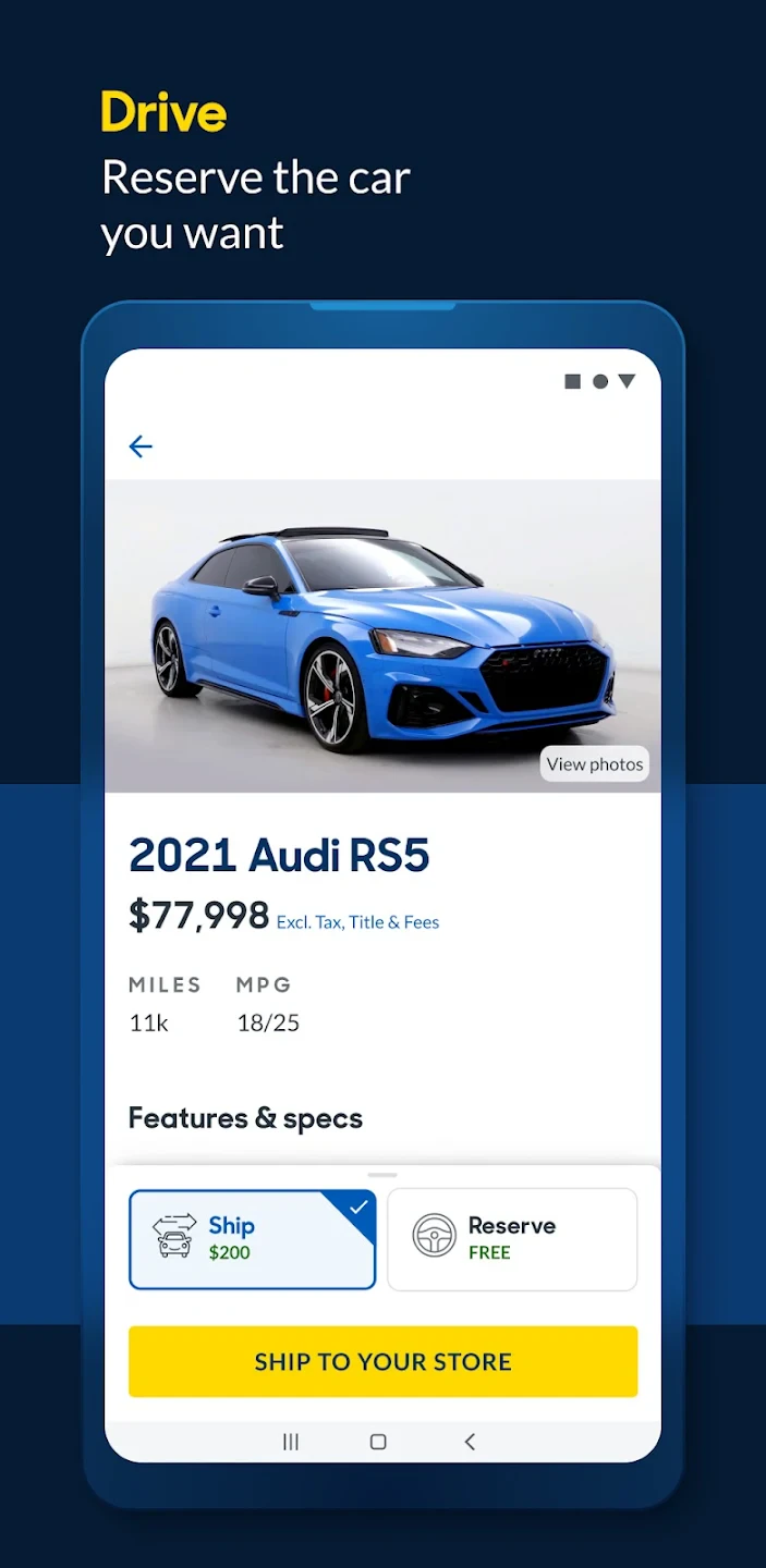 • Manage Your Purchase: Once you’ve decided on a car, the app guides you through the online ordering process, provides digital paperwork and payment options, and facilitates delivery services or helps you arrange pickup, ensuring a smooth transition from viewing to driving away.