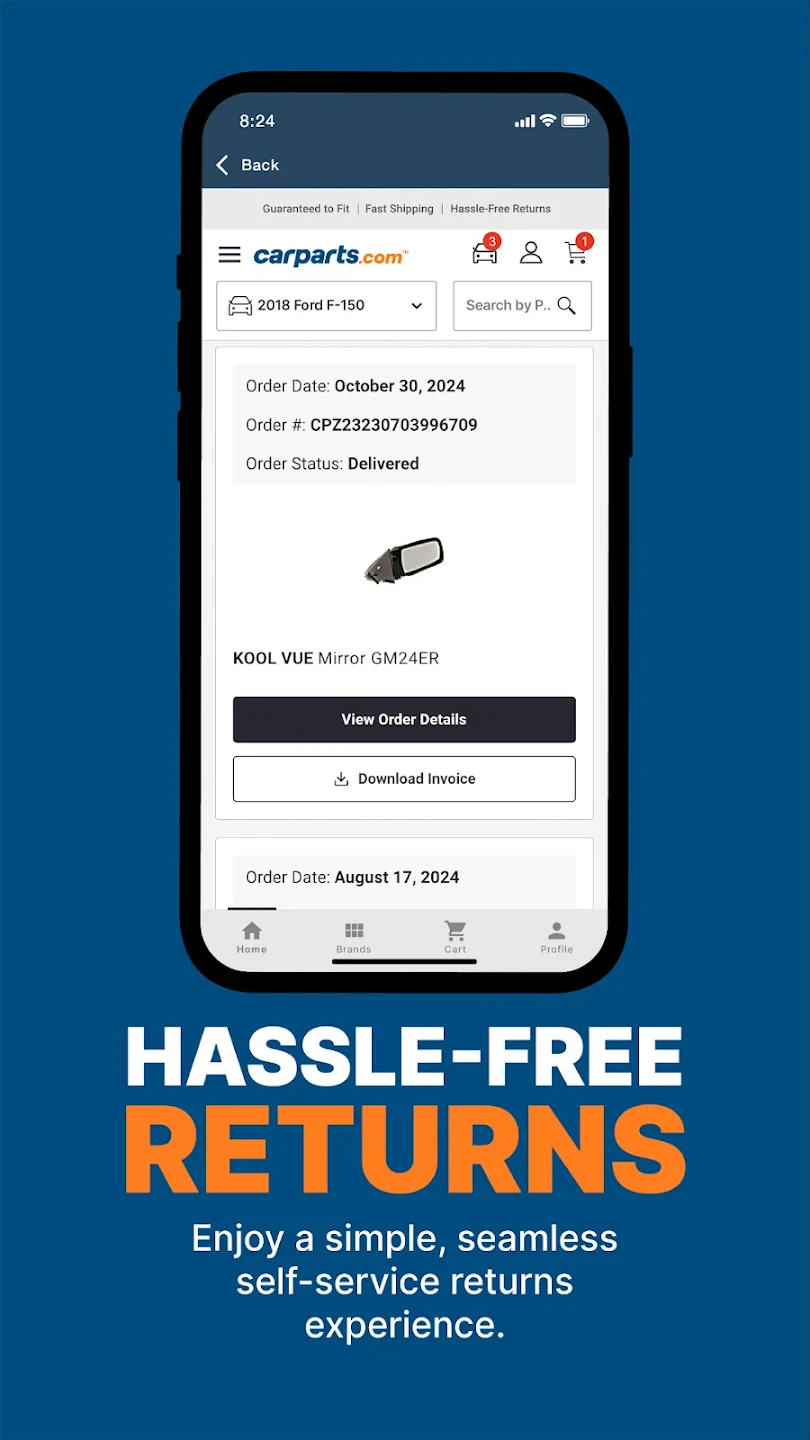 A: CarParts.com offers a hassle-free return policy for most parts. If you encounter a compatibility issue or receive the wrong item, please contact our customer service team via the app’s chat shortly after delivery. They will guide you through the returns process, ensuring you get a resolution promptly.