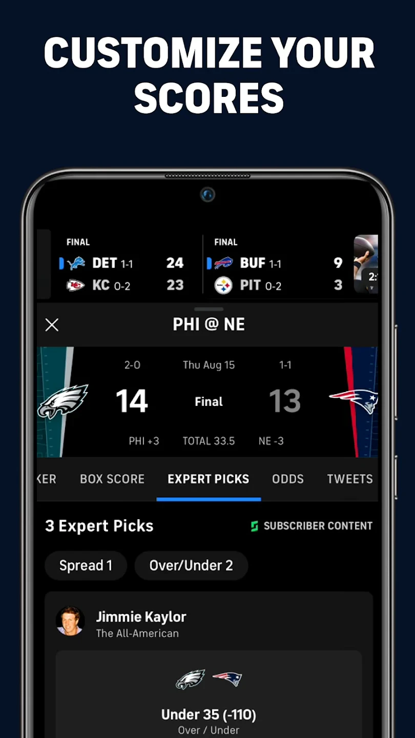 Known for exclusive content and strong NBA coverage with live streaming options. Features similar CBS push notifications but focuses more on regional sports news and high-profile college coverage.