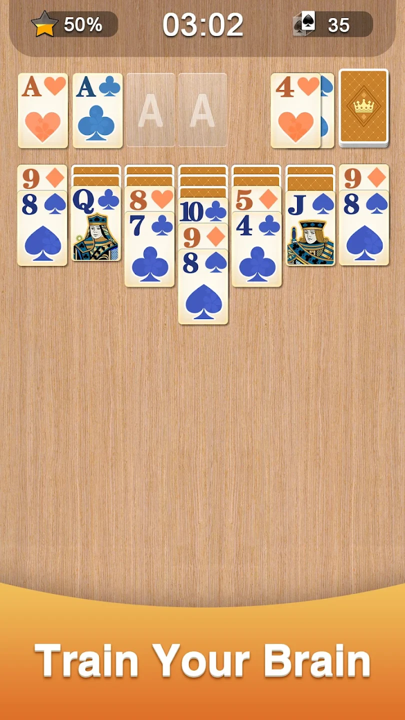 - [Customization or Power-ups]: Customization options may include selecting different card backs and background themes. Progression systems, like earning crowns or stars based on completion speed/score, can motivate continued play.