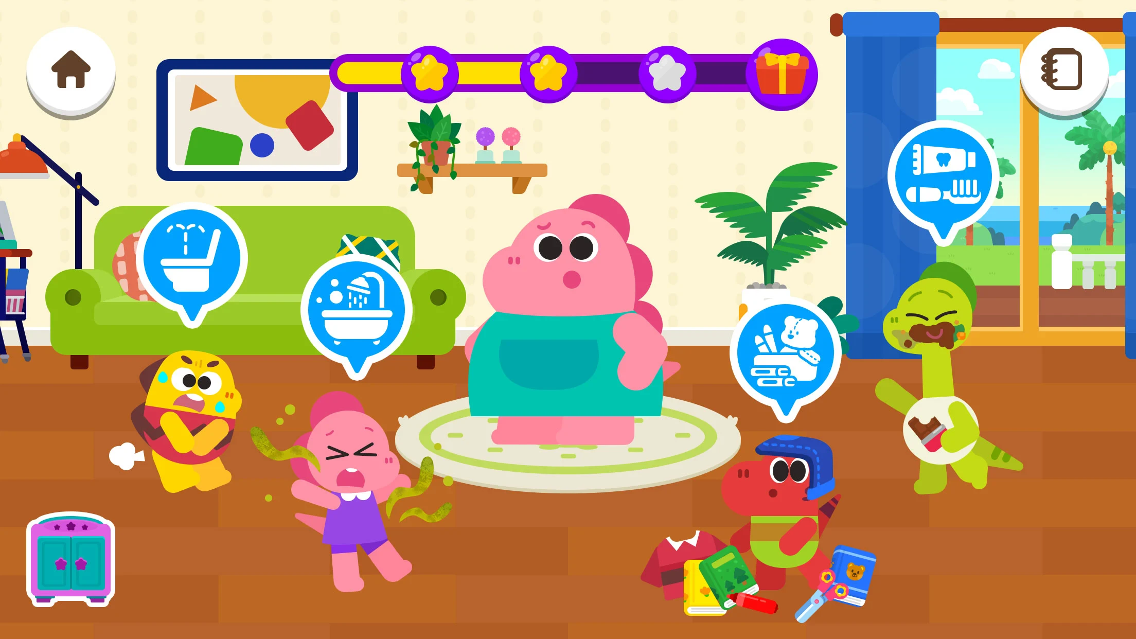 - Step 2: Guide Cocobi through each scenario by matching items or following on-screen instructions. For example, tap the soap and then the hand to complete the handwashing sequence correctly.