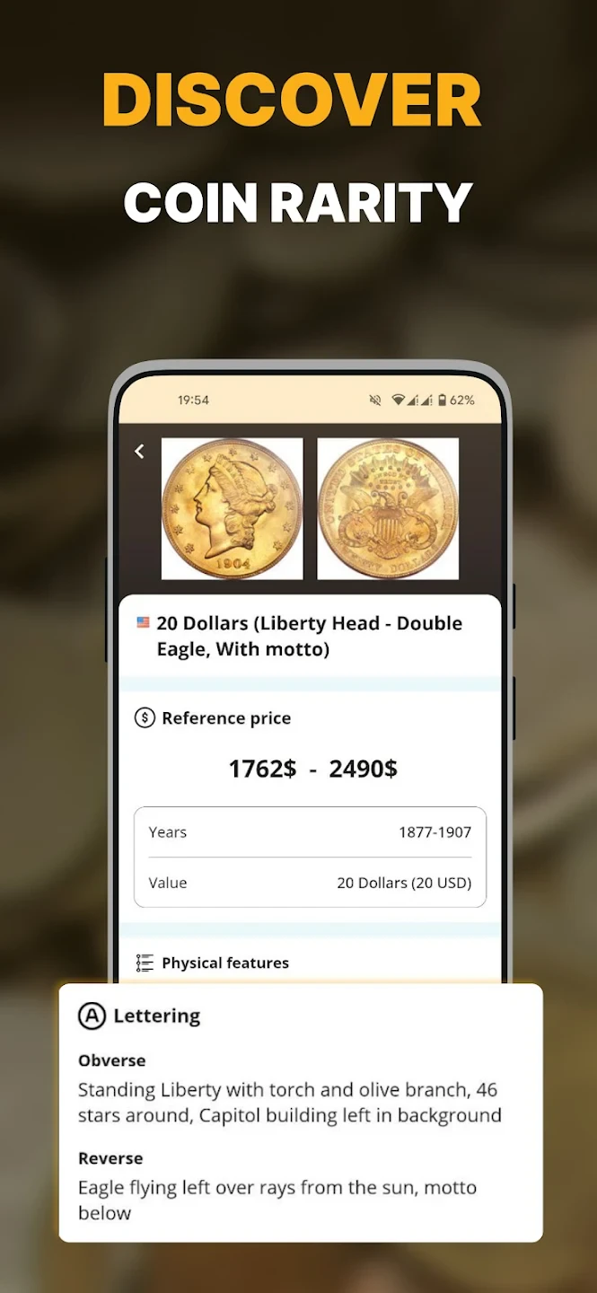 - Detailed Database Lookup: Access a vast repository containing thousands of coins from around the globe with specific details like country, year, mint, metal composition, face value, diameter, edge inscription, and both collector value and bullion/market price. This ensures precise identification and valuation accuracy, crucial for serious collectors or those evaluating potential investments.