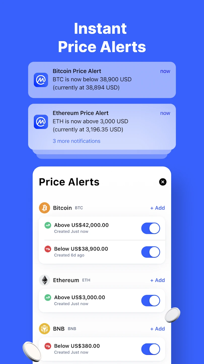 - Portfolio Tracker: Seamlessly monitor your cryptocurrency holdings’ value, allocation, and performance against market benchmarks. This feature simplifies managing diverse digital asset investments with customizable notifications.