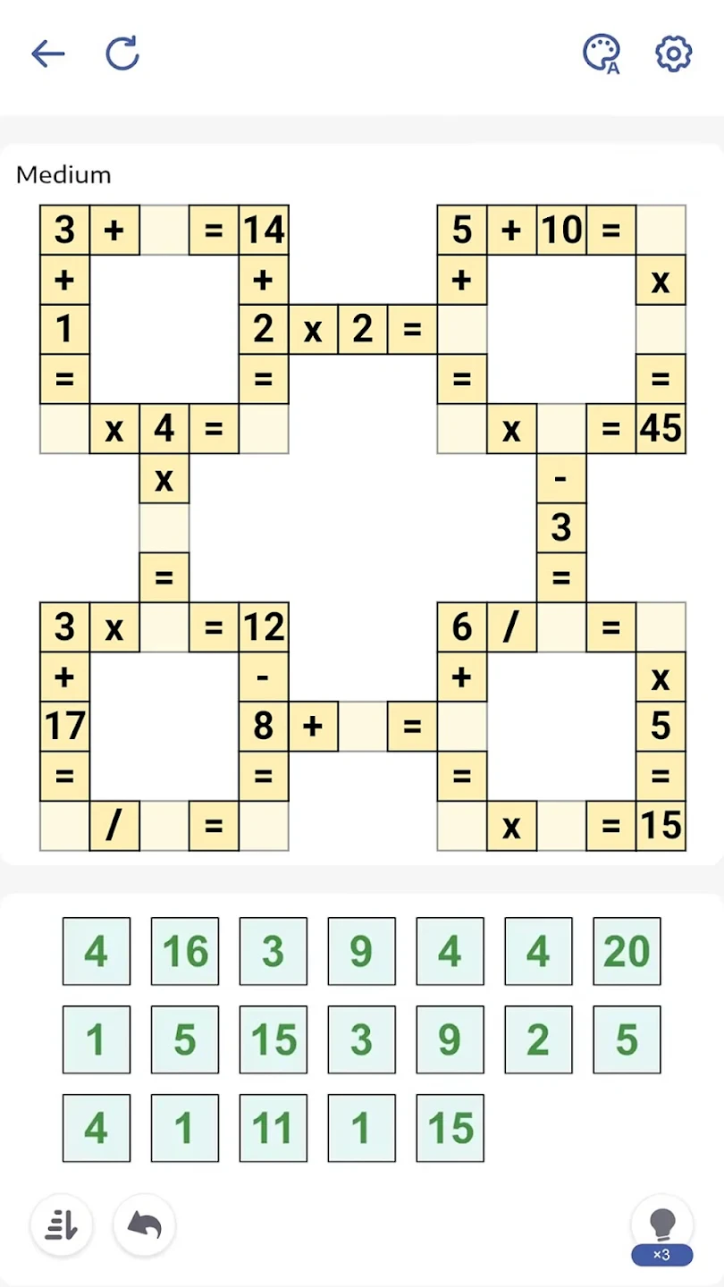 • Step 1: Open the game and select “Easy Mode” for your first level. You’ll see a small grid (usually 4×4) with some pre-filled numbers and operation symbols.