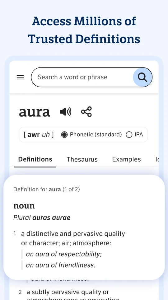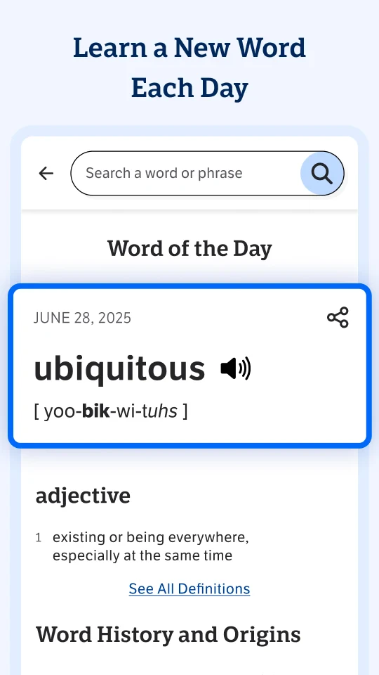- Comprehensive Word Definitions: Access clear, concise definitions, detailed etymologies, multiple parts of speech, and pronunciation guides (often with audio) for virtually any English word. This foundational feature saves users time and ensures accurate understanding, essential for effective communication, whether composing formal emails or casual text messages.