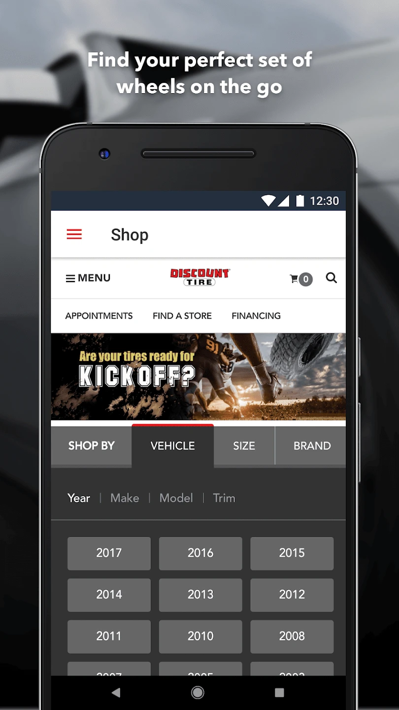 A: Yes, you can select different tire models and sizes directly within the app. Just be sure to review your cart carefully before checkout to ensure accuracy.