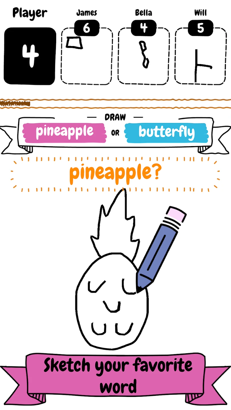 - [Controls or Interface]: Players draw directly on touch-enabled screens using intuitive finger swipes and taps. The on-screen controls are simple with a clear drawing area and easy-to-tap action buttons, making it accessible for all ages.