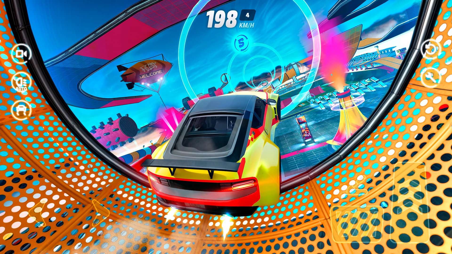 • [Modes or Levels]: Played through an endless runner format, earning currency for each lap completed. Players can unlock 15 different stunt vehicles with unique handling traits and special abilities, with daily challenges adding time-sensitive goals.