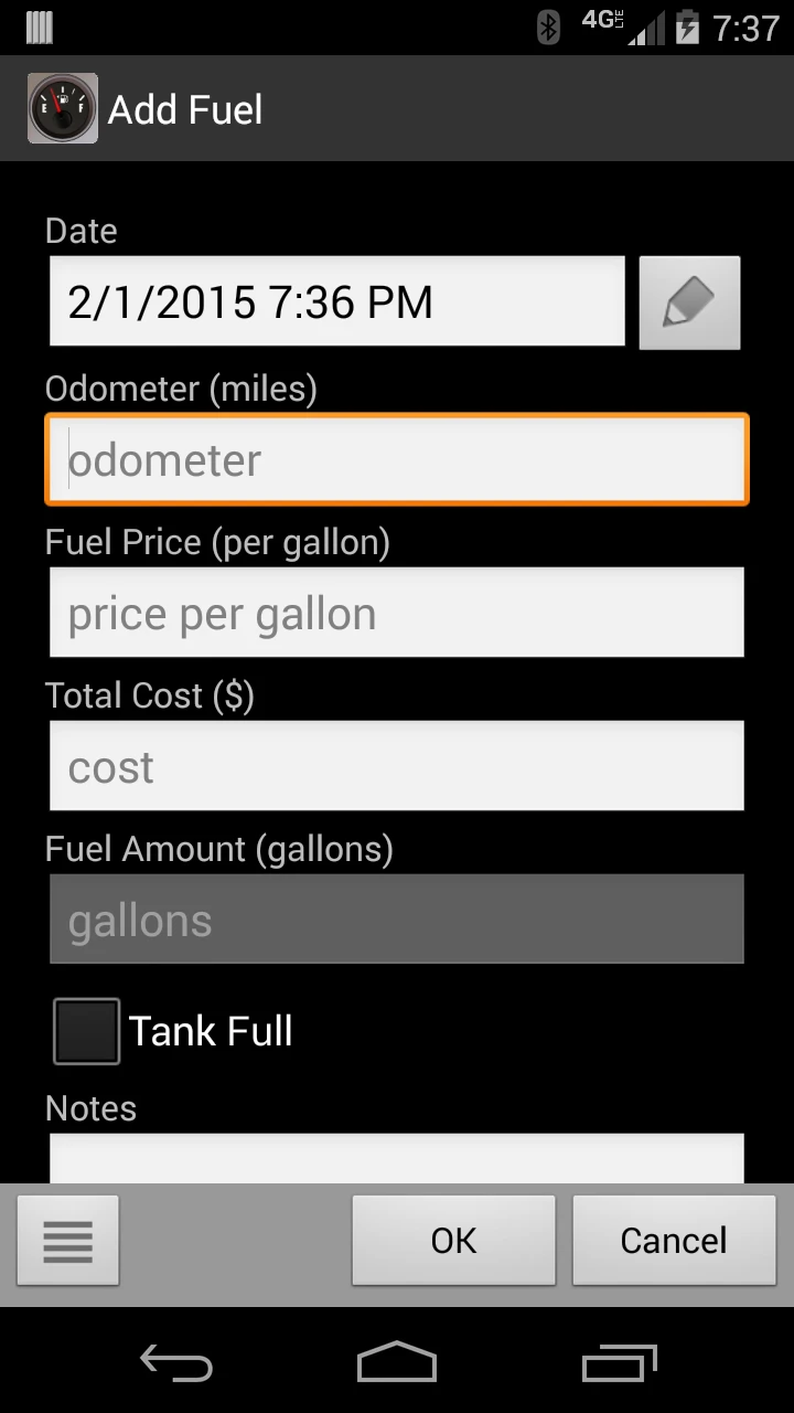- Automatic Calculations: Instantly calculates miles per gallon (MPG), cost per mile, and total gallons used between fill-ups. The system uses precise algorithms to ensure accuracy, significantly simplifying the manual computations that many drivers perform in spreadsheets or notebooks.