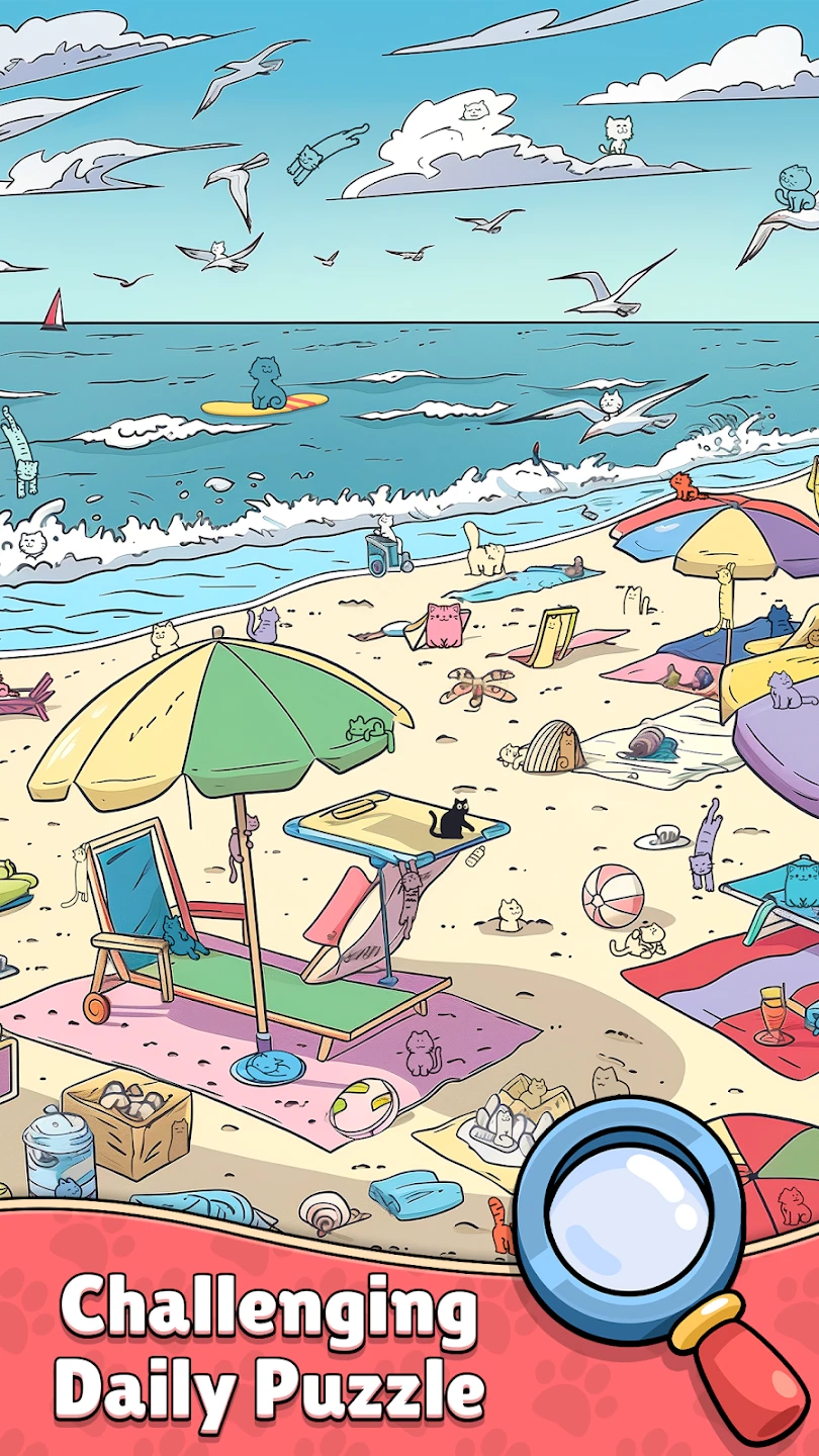 • [Modes or Levels]: “Find The Cat – Spot It!” typically features a single-player campaign spanning many levels across different themes (forest, city, sky, etc.). Each level presents unique environmental puzzles and challenges, offering high replayability through hidden collectibles or secret paths sometimes requiring retries. A potentially simple mini-game mode might be included for quick fun.