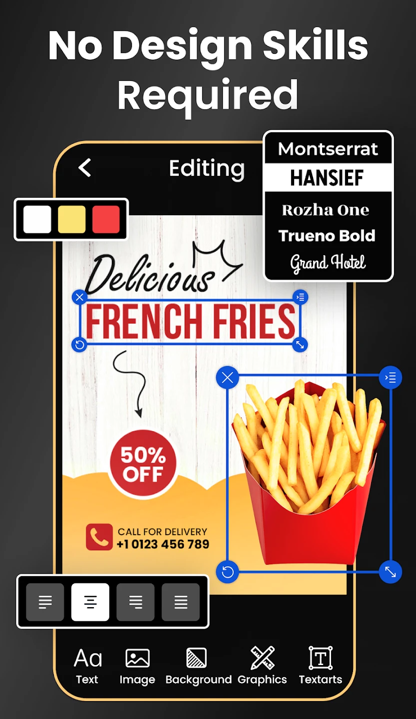- Advanced Customization Tools: Modify colors, fonts, effects (like shadows, gradients), borders, and text properties with a comprehensive set of tools. This empowers users to refine every detail until their design is precisely the look and feel they envisioned, ensuring flyers stand out with a unique identity.