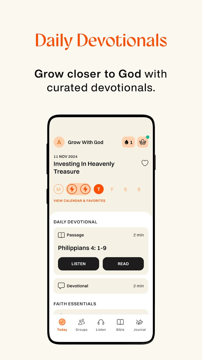 • Daily Devotionals: Curate a fresh daily scripture verse or devotional message to kickstart your spiritual journey. These concise, thought-provoking pieces help you start the day grounded in faith, providing reflective questions and gentle challenges to consider how the reading applies to your life, reinforcing your connection to God’s word.