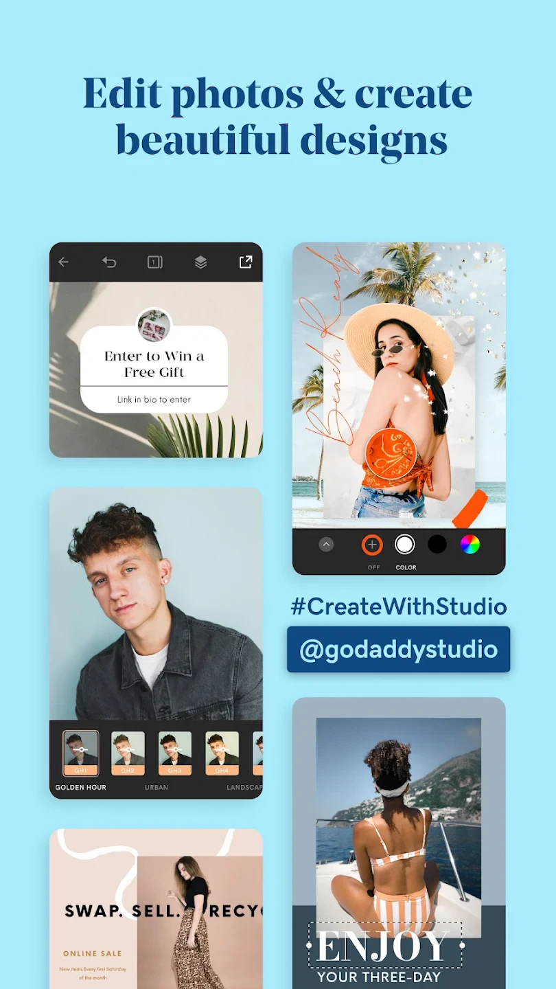 GoDaddy Studio: Create & Grow is a user-friendly website building and management app designed to help individuals and businesses create, customize, and maintain their online presence without needing deep technical expertise or coding skills. It offers drag-and-drop tools, templates, and integrated marketing features to guide users through building everything from simple blogs to sophisticated ecommerce stores.