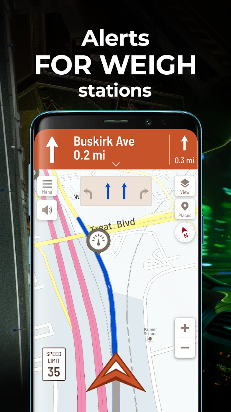 • Detailed Truck-Specific Maps: Navigate challenging terrains and find truck-friendly routes, bypassing obstacles like narrow bridges or low-clearance entrances. This feature ensures safer and smoother journeys by avoiding potential hazards common for large vehicles, reducing travel time and improving safety margins.