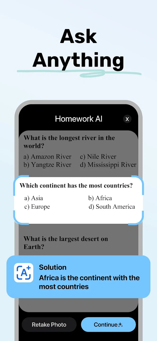 Homework AI – Math & Essay App is a comprehensive academic assistant that helps students tackle math problems and improve essay writing through AI-powered solutions. This versatile app provides step-by-step guidance for various subjects, making complex topics more accessible while reducing student frustration. It’s designed for K-12 learners, college students, and anyone seeking efficient homework support across disciplines like algebra, calculus, English composition, and history essays.