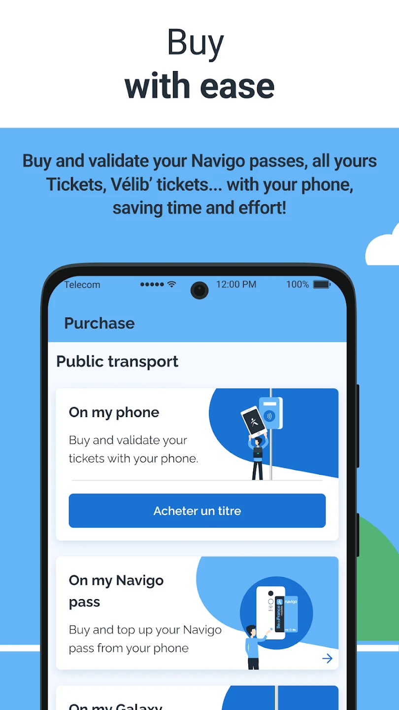 • Integrated Ticketing & Fares: Purchase single-journey tickets, weekly passes, and regional travel cards (like the Paris Visite) directly from the app, automatically calculating fares based on your planned itinerary. This eliminates the need for physical tickets or cash, speeding up station entry and transfers by allowing instant validation via your phone.