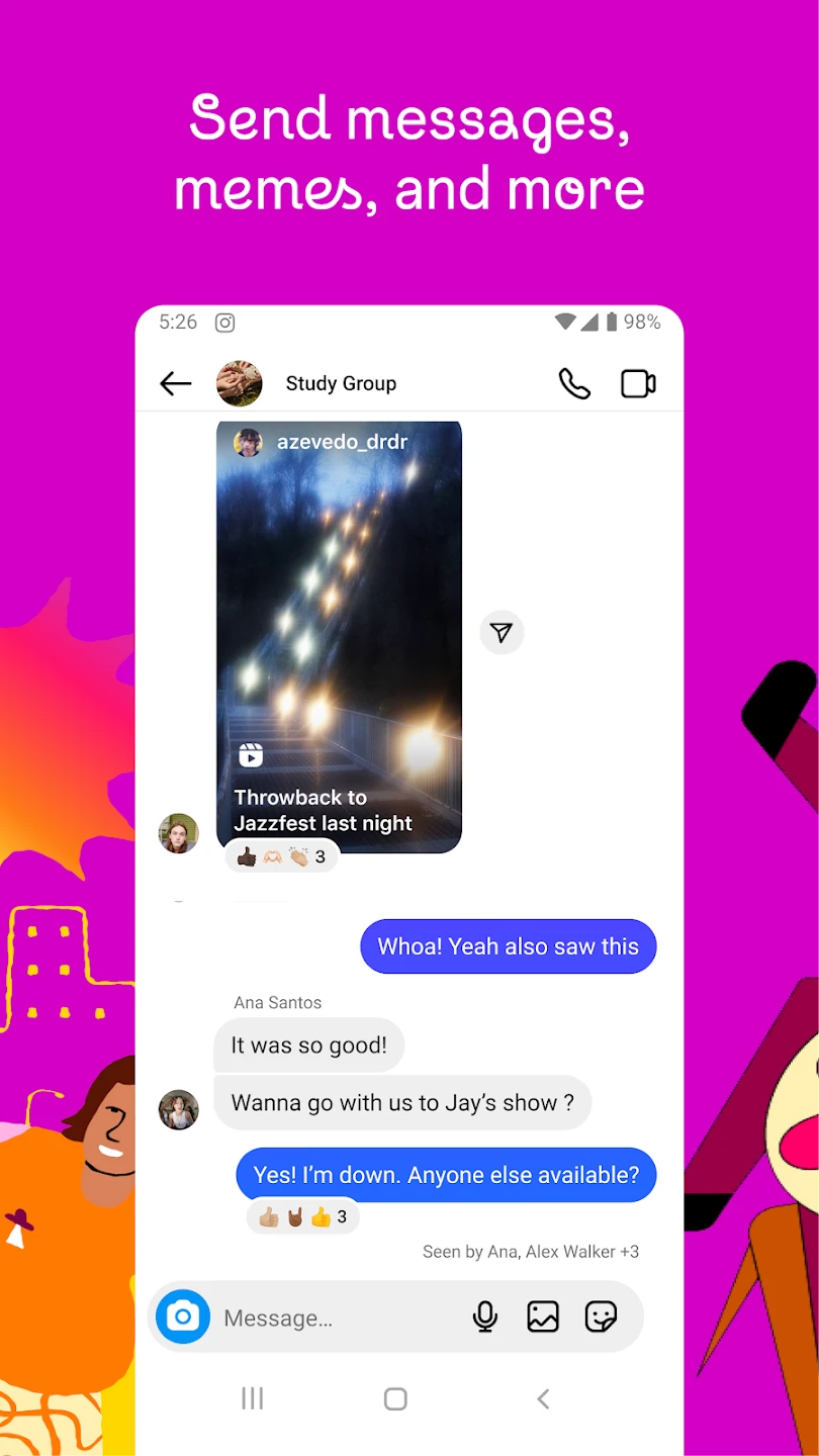 This app offers an Instagram-like interface with focus on text-based posts and direct conversations. Designed for concise interactions and real-time discussions, Threads complements Instagram’s visual focus with a more text-heavy social experience.