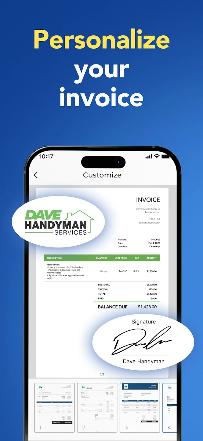 - Quick Invoice Template System: The app provides customizable templates that help users create professional invoices instantly. For example, a freelancer can select a template based on client industry, automatically populating relevant fields to save time. This feature significantly cuts down the time spent manually creating invoices from scratch.