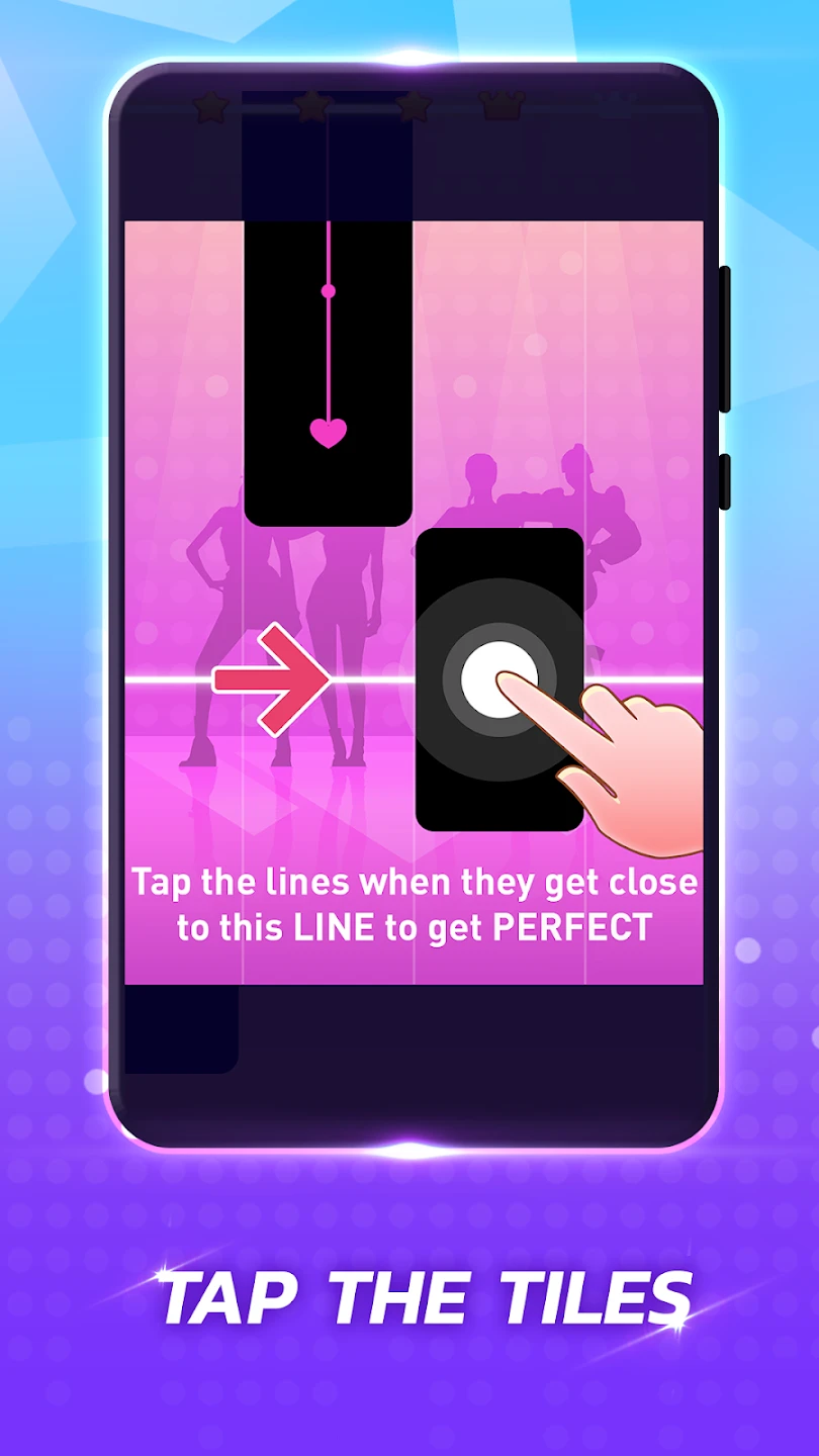 • [Visuals or Art Style]: The game features vibrant, colorful graphics with smooth animations synchronized with the music. Stylized character designs of virtual K-pop idols appear during concerts, while the background adapts to the song’s theme. Neon effects and particle animations enhance the visual feedback during gameplay.