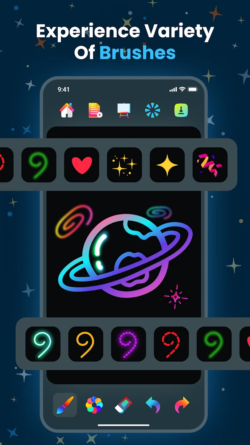 - Bright Color Palette & Glow Effects Generator: Users can select from a wide array of colors or create new ones, and crucially, apply customizable glow effects to strokes or entire layers, making colors pop with an ethereal light. This feature transforms ordinary drawings into captivating, high-contrast pieces perfect for digital art sharing or creating unique visuals.