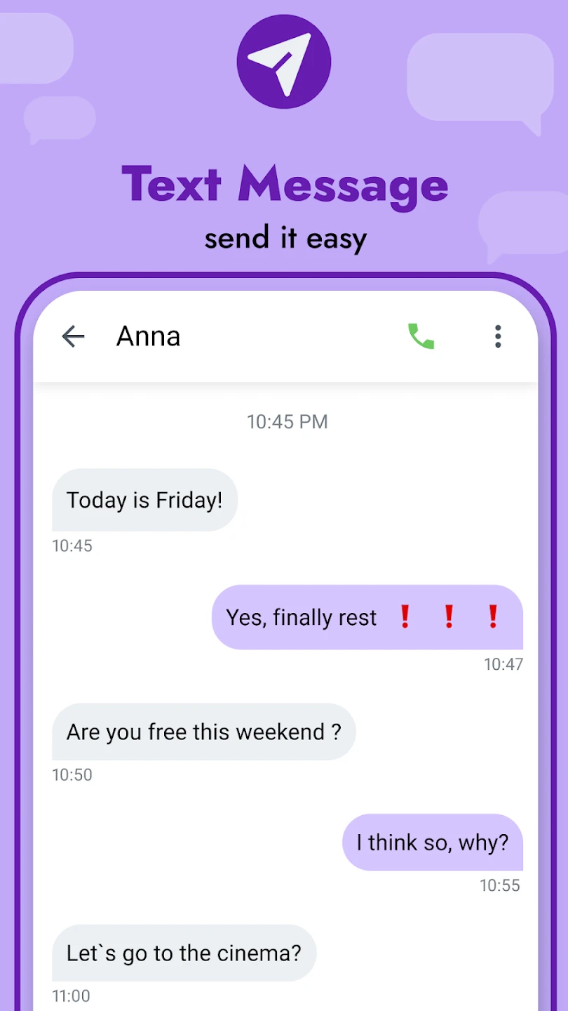 - Media Support (MMS): Easily attach photos, videos, and audio clips along with your text messages. This feature is ideal for sharing life moments, visual information, or keeping conversations more engaging and informative.
