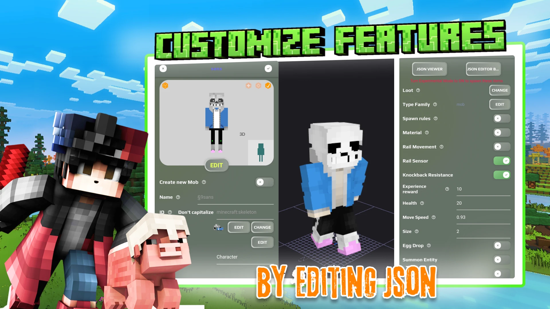 - Extensive Skin Customization: Utilizing built-in tools or image uploads, users can design unique textures and patterns for mobs, enabling the creation of visually striking creatures that fit custom world themes or personal creative ideas.