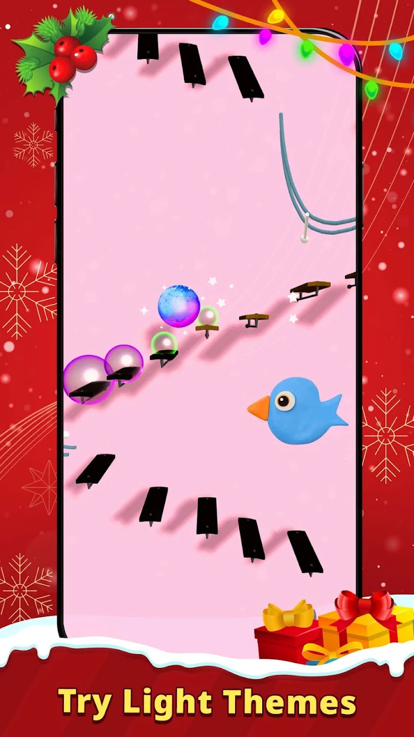 • [Core Gameplay Loop]: Players guide colorful balls through rhythm-synced obstacle courses by timing jumps and bounces to collect musical notes and avoid hazards, progressively mastering increasingly difficult patterns while the soundtrack evolves. Players use rhythmic timing, precise tap controls synchronized with visual cues like flashing notes, and adaptive ball physics to navigate tracks.