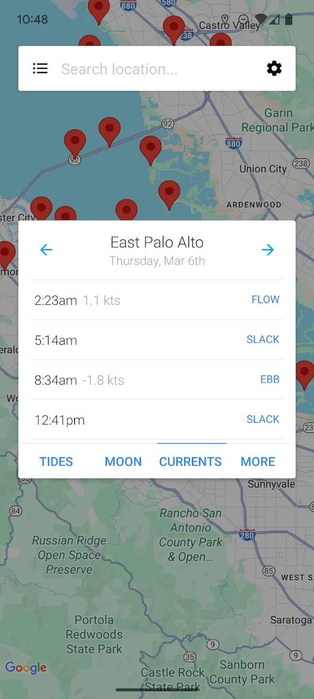 - User-Friendly Interface & Notifications: Designed with a clean layout, the interface is intuitive and easy to navigate, even with gloves on. Additionally, users can set notifications for specific tide events like high tide, low tide, or specific moon phases, ensuring they never miss a crucial moment relevant to their plans. This offers significant time-saving benefits and enhances the user experience.The straightforward design ensures quick information retrieval even in less-than-ideal conditions.