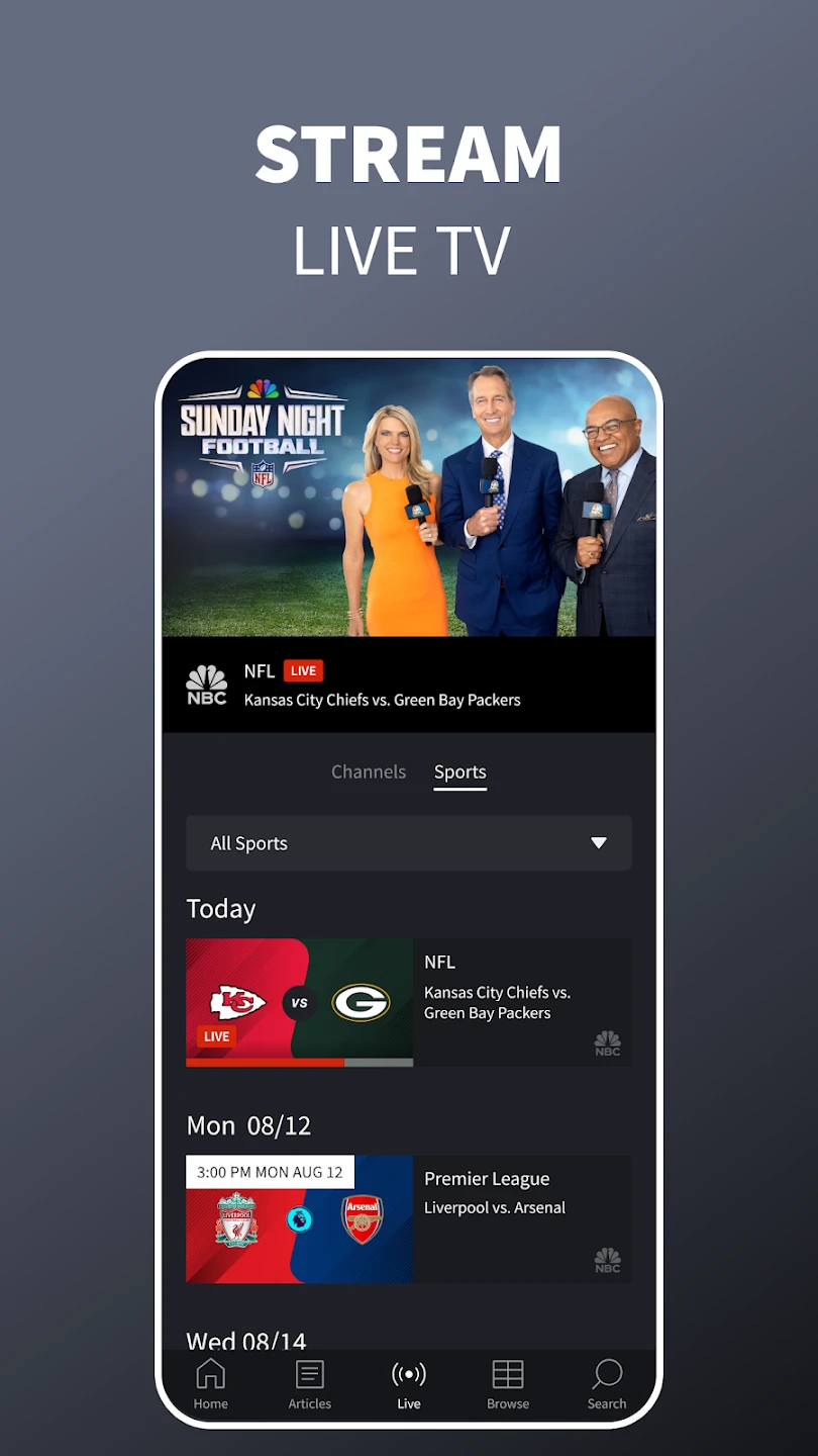 - Live Game Streaming: Instantly watch Major League Baseball, the NBA, and Sunday Night Football on your smartphone or tablet. This feature eliminates the need for multiple streaming services or cable subscriptions, letting you enjoy premium sports content anytime, anywhere.