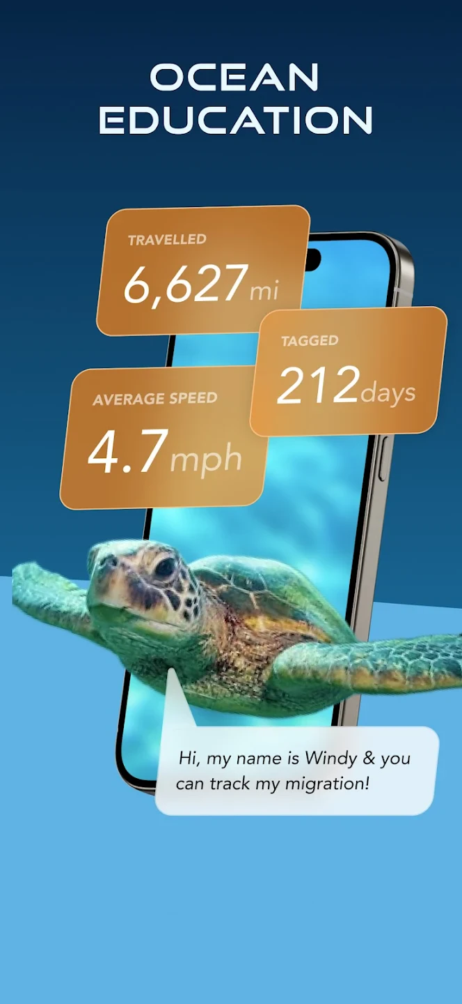 Offers tracking data for a wider range of marine life beyond just sharks, including turtles and marine birds. Features a robust search function and detailed animal bio information accessible via simple taps. |