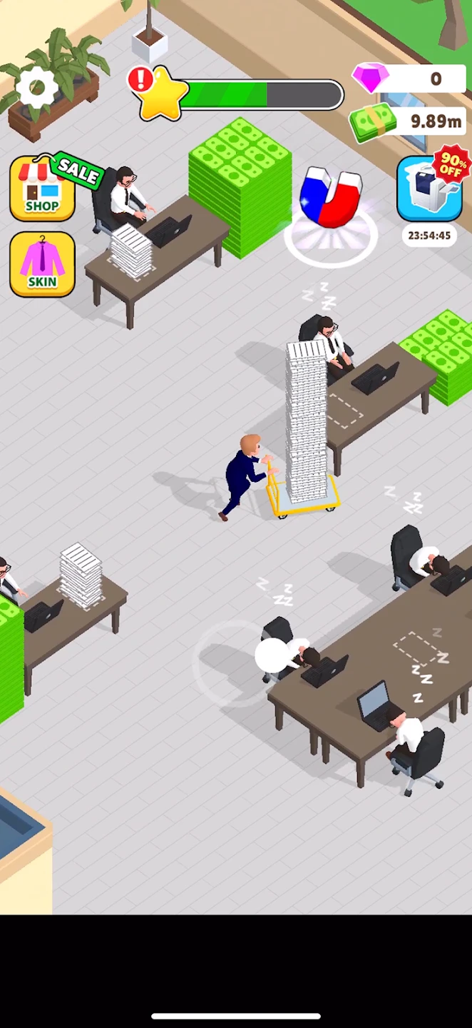 - [Visuals or Art Style]: Features minimalist, vibrant cartoon graphics with a distinctive office theme, employing charming, flat-color design and smooth animations that give the game a polished yet approachable feel.