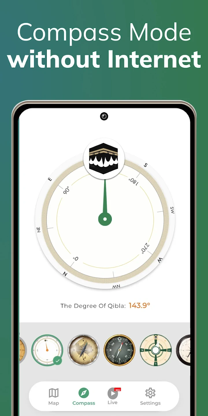 - Built-in Digital Compass: A highly sensitive electronic compass within your device accurately detects magnetic north (and corrects for it). The **Qibla Finder Compass 100%** displays your heading, making it easy to align yourself precisely with the correct direction for prayer.