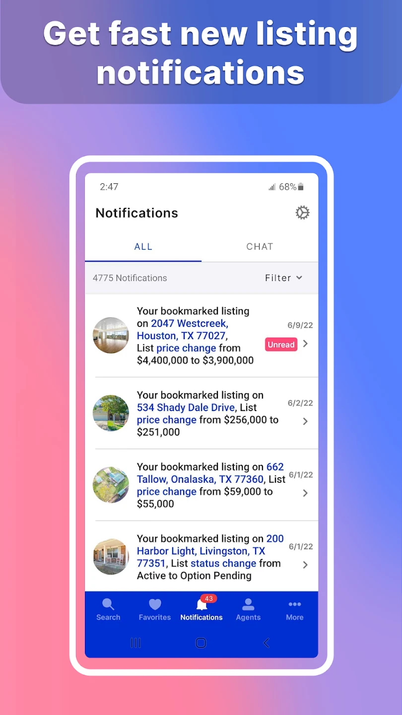 The Real Estate by HAR.com – Texas mobile application is designed specifically for Texas professionals in the real estate industry. This comprehensive tool offers mobile access to market data, client management capabilities, and transaction assistance. It serves agents, brokers, property managers, and other Texas industry members who need reliable on-the-go access to real estate information and tools. App users can efficiently stay connected to listings, client communications, and market trends while working remotely anywhere.