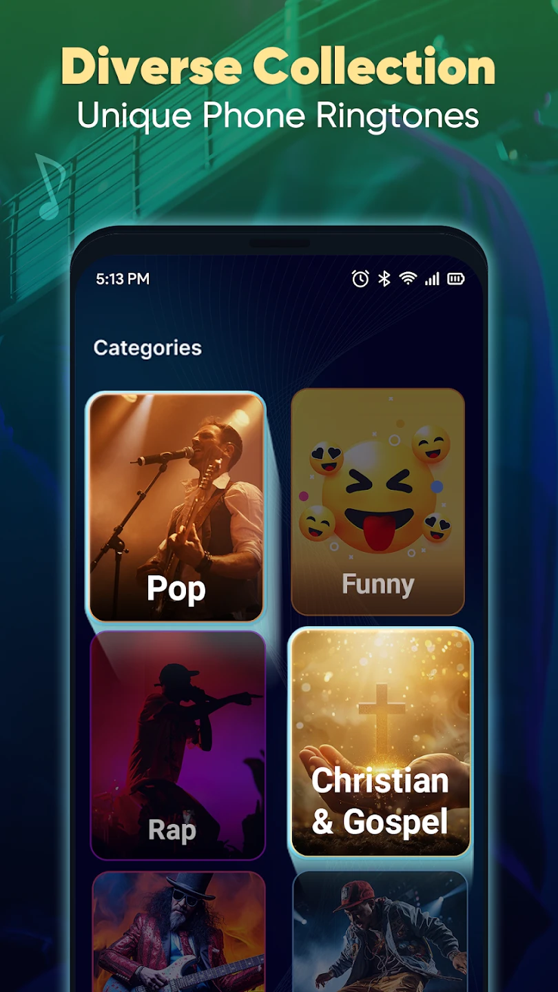 • Audio Library & Sound Collection: The app comes equipped with a vast, regularly updated collection of royalty-free audio samples, ranging from classic melodies and nature sounds to futuristic effects and popular movie themes. This extensive library saves users considerable time by offering countless ready-made options to choose from instantly, allowing immediate personalization without external resources.