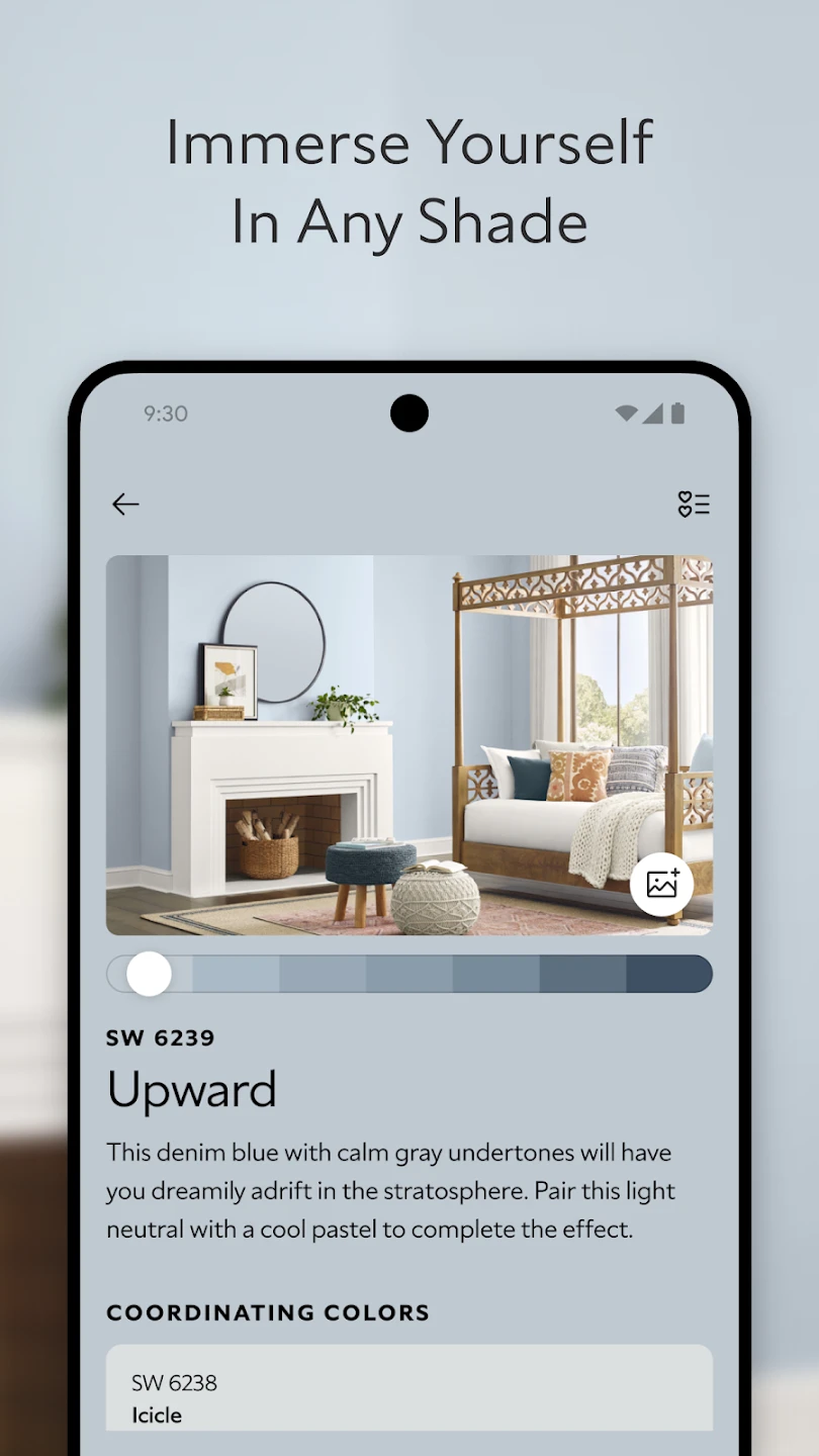• Save Favorite Colors: Pin your most frequently used or preferred colors for instant access. This advanced feature keeps your Sherwin-Williams Color Expert™ favorites organized, making future projects significantly faster and more convenient, regardless of the device you use.