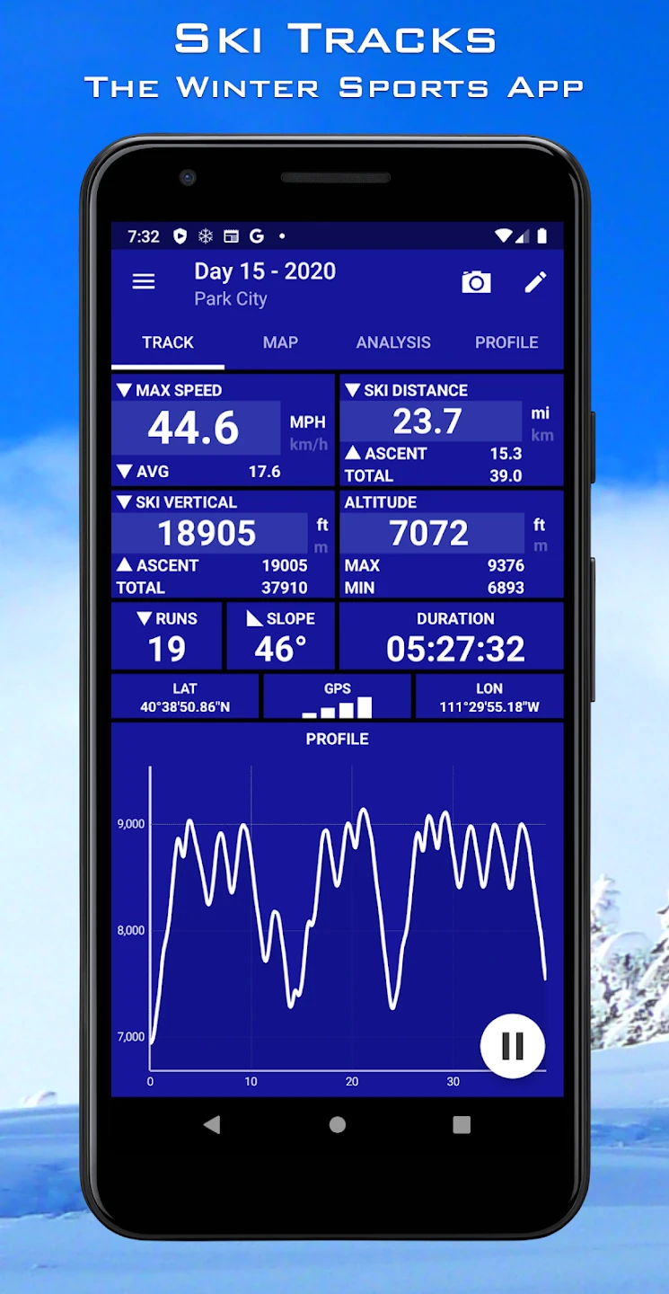 - Terrain Data Integration: Access slope information including difficulty rating, aspect, and altitude directly on your map view while tracking. This feature enables smarter course selection based on current conditions and skill level, significantly reducing time spent choosing trails and increasing time spent skiing efficiently and confidently.