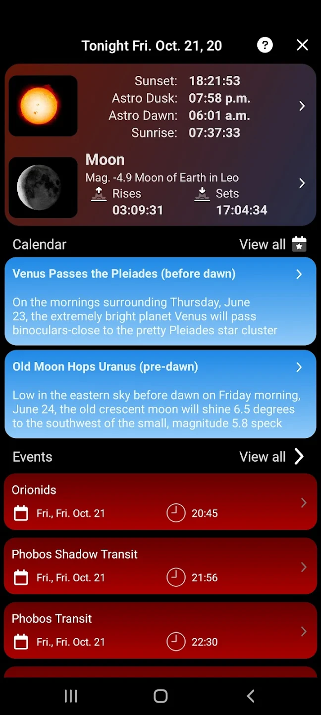 • Advanced Telescope Planning and Alignment Tools: This feature assists in planning telescope observations and even assists with polar axis alignment for equatorial mounts, specifying ideal exposure times and magnifications needed to observe specific details, making long-exposure astrophotography more achievable.