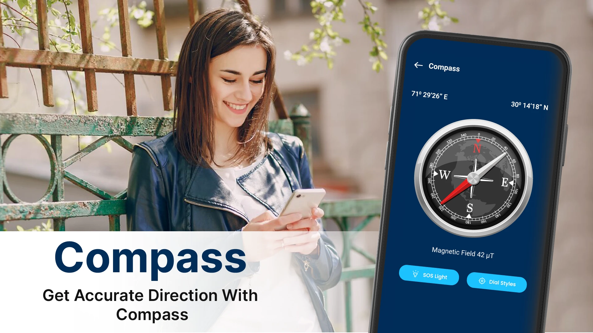 Smart Compass: Digital Compass is a straightforward mobile application designed to function as your electronic magnetic compass. It accurately detects the Earth’s magnetic field to determine your current heading relative to true north, providing an easy-to-read directional indicator displayed via your phone’s screen. Ideal for anyone needing quick direction finding whether they’re navigating outdoors, hiking trails, taking driving directions, or simply confirming their bearing in the real world.