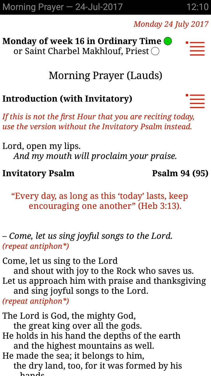 - Prayer & Liturgical Readings Library: Universalis offers an extensive collection of prayers, readings, responsories, antiphons, and chants directly accessible from the universalis calendar context. This feature enhances the user experience by providing relevant spiritual content for any given day or feast without leaving the app, supporting personal reflection and devotional practice according to the universalis cycle. It serves as a portable spiritual companion, bringing richness to one’s engagement with the universalis tradition.